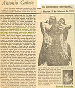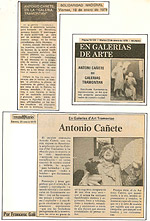 Antonio Cañete no necesita de mis palabras ni de las de nadie para que el público comprenda que se encuentra ante la obra de un artista de verdad, de un hombre capaz de una auténtica creación artística personal, fuerte, segura, tan alta en dignidades como en amarguras.